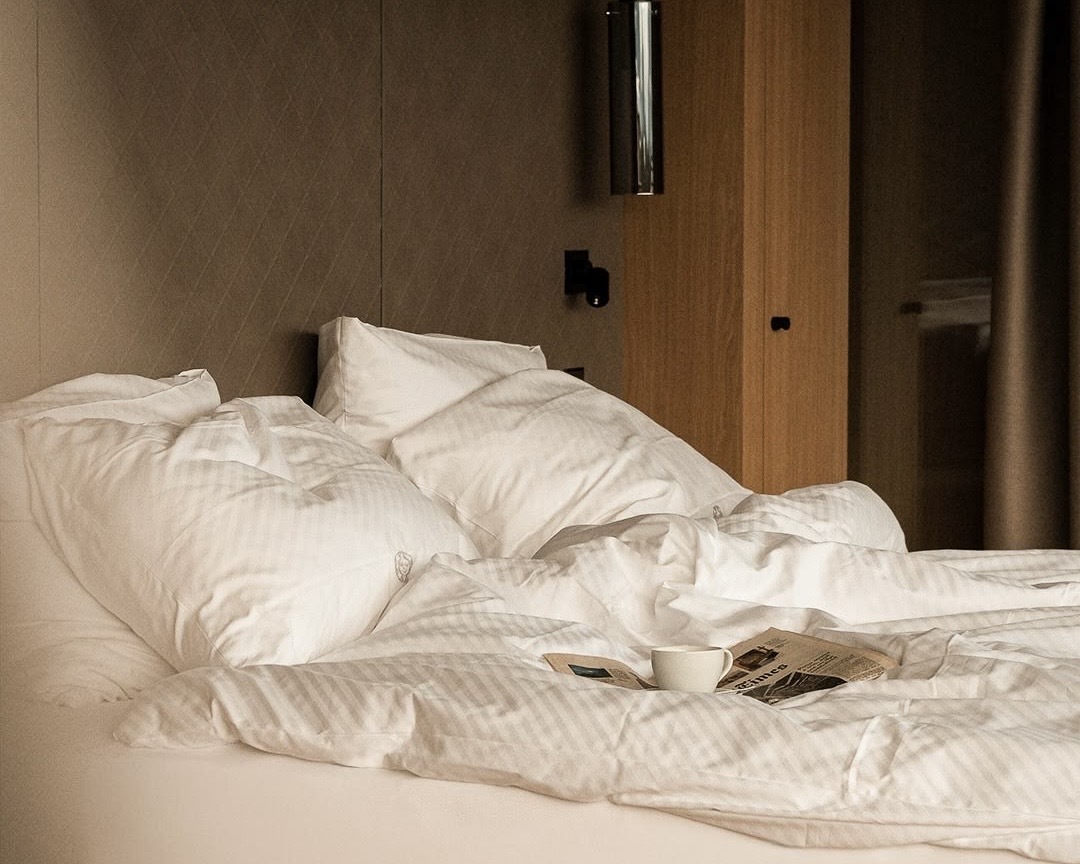 接著,喝下一杯溫水並進行光線調節,利用自然光喚醒感官。