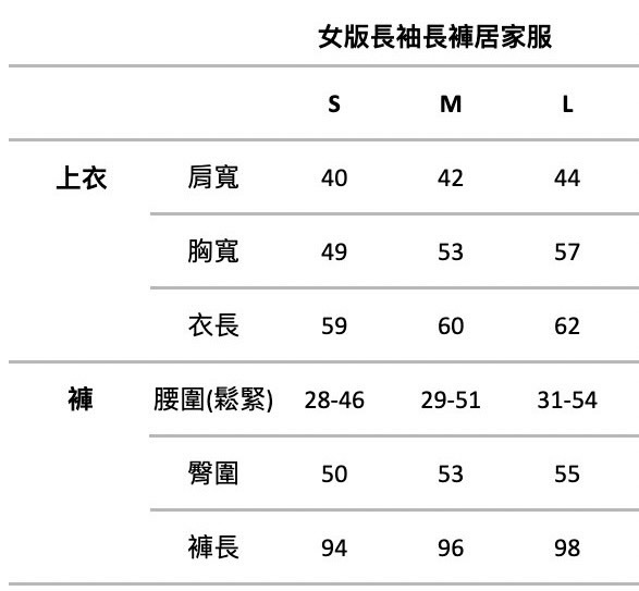 居家服皆分為上衣下身兩件式套裝販售,衣褲尺寸相同不拆賣。