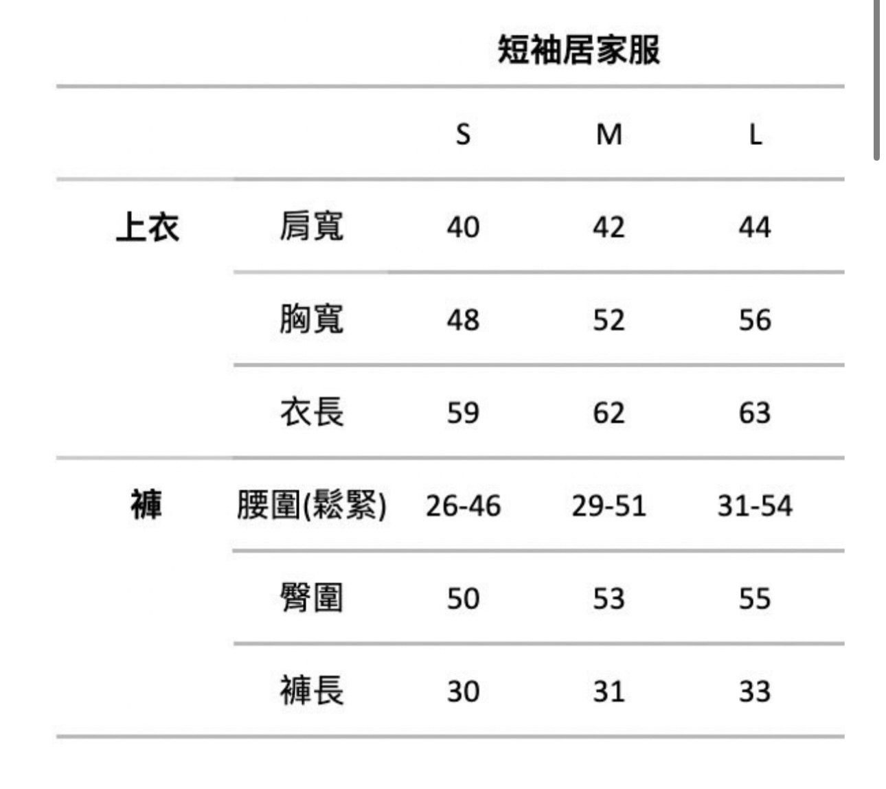 居家服皆分為上衣下身兩件式套裝販售,衣褲尺寸相同不拆賣。