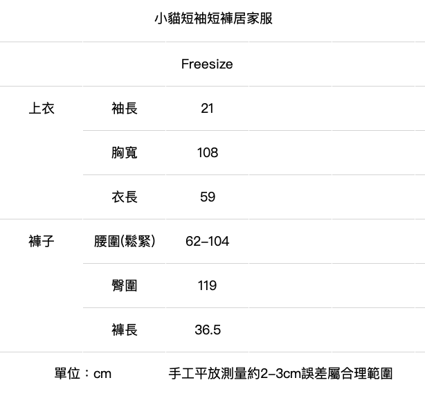 居家服皆分為上衣下身兩件式套裝販售,衣褲尺寸相同不拆賣。