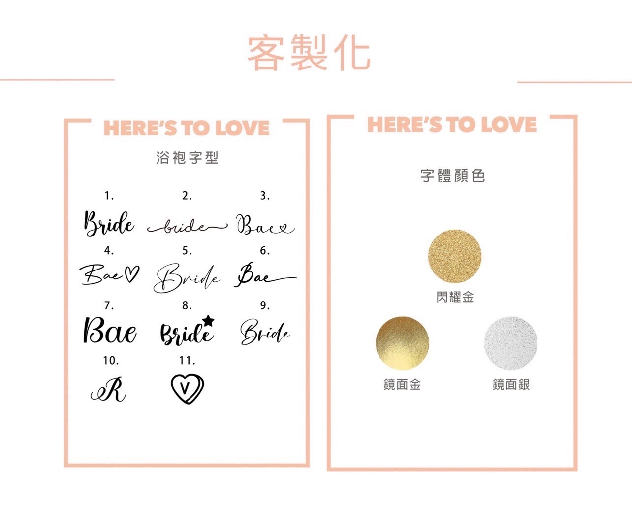 **此款浴袍因材質布料問題,不建議搭配鏡面系列字體,會有較明顯的纖維紋路裂紋感不屬瑕疵,介意者請選擇閃耀金。