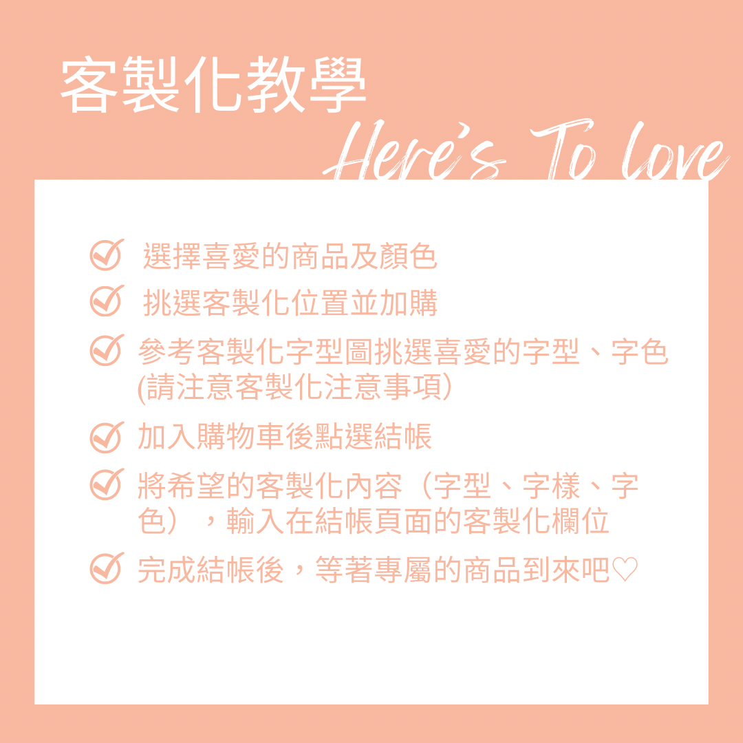當您使用Here's to Love做任何購買行為時,即表示您已知悉並同意此網站所有約定條款之全部內容。